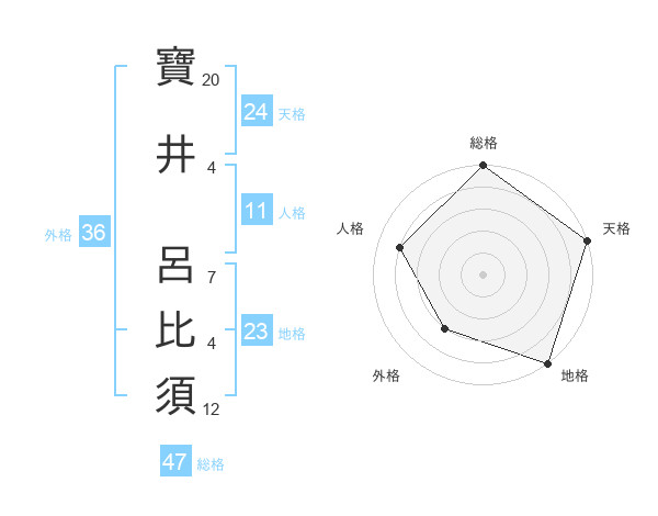 寶井 呂比須さんを姓名の画数から五運を鑑定