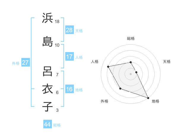 浜島 呂衣子さんを姓名の画数から五運を鑑定