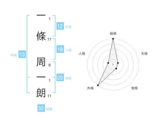一條 周一朗さんの外格は13画の5点!