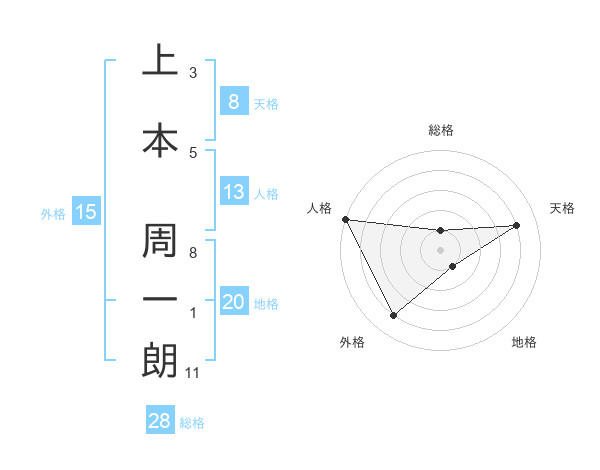 上本 周一朗さんを姓名の画数から五運を鑑定