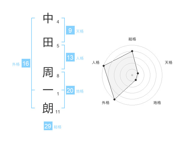 中田 周一朗さんの総格は29画の4点!