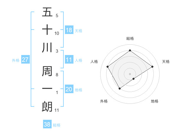 五十川 周一朗さんの総格は38画の4点!