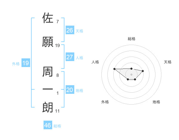 佐願 周一朗さんを姓名の画数から五運を鑑定