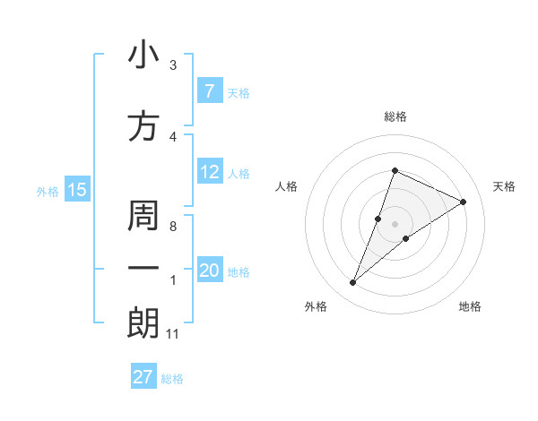 小方 周一朗さんの総格は27画の3点!