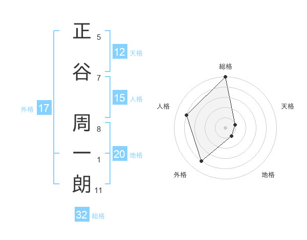 正谷 周一朗さんを姓名の画数から五運を鑑定
