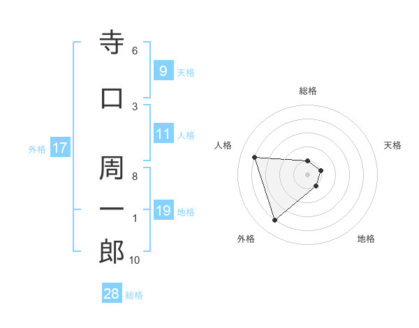 寺口 周一郎さんの総格は28画の1点!