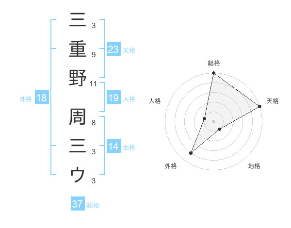 三重野 周三ウさんを姓名の画数から五運を鑑定