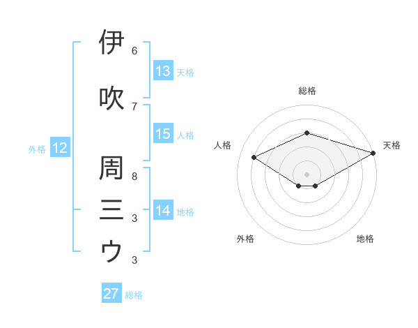 伊吹 周三ウさんを姓名の画数から五運を鑑定