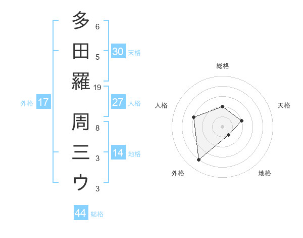 多田羅 周三ウさんの総格は44画の2点!