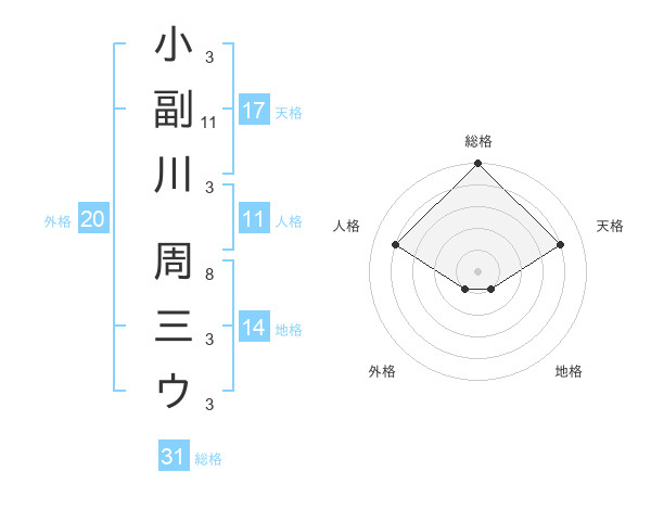 小副川 周三ウさんの総格は31画の5点!