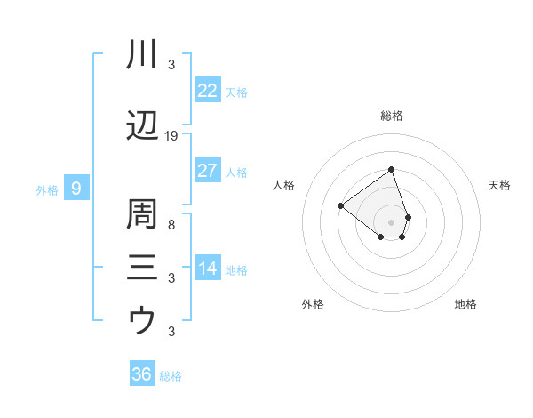 川辺 周三ウさんを姓名の画数から五運を鑑定