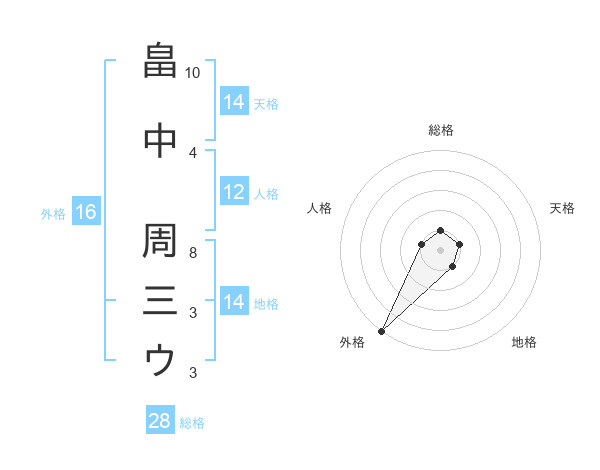 畠中 周三ウさんの外格は16画の5点!