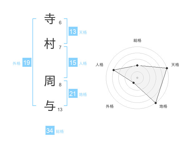 寺村 周与さんの地格は21画の5点!