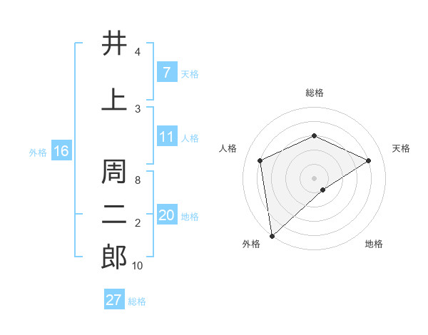 井上 周二郎さんを姓名の画数から五運を鑑定