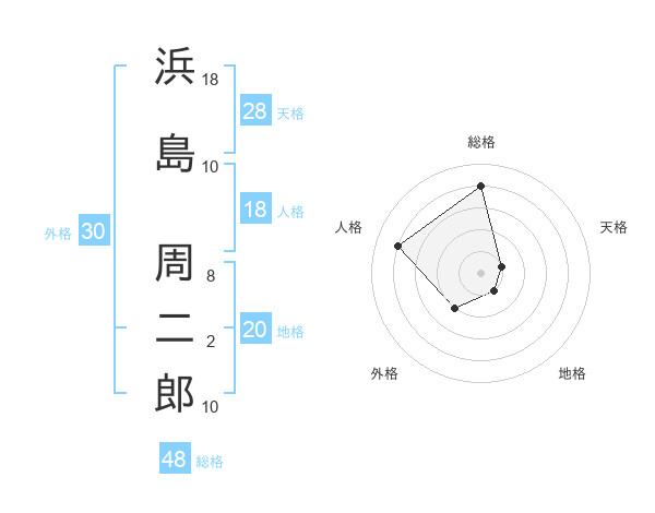 浜島 周二郎さんを姓名の画数から五運を鑑定