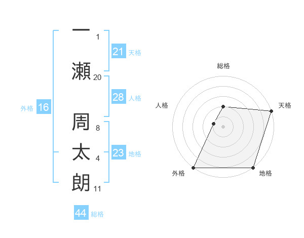 一瀬 周太朗さんの天格は21画の5点!