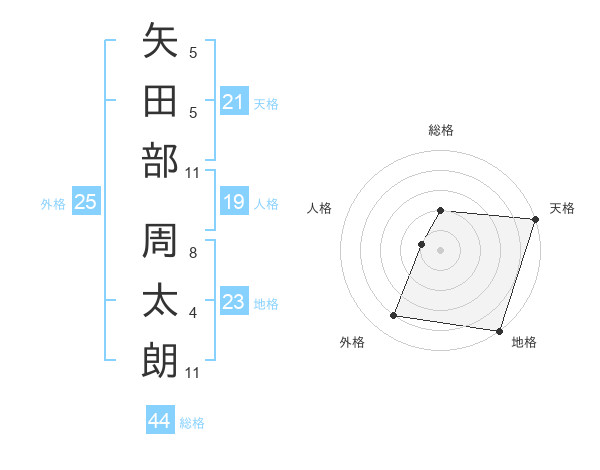 矢田部 周太朗さんの天格は21画の5点!