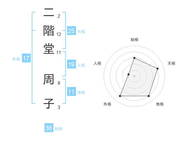 二階堂 周子さんを姓名の画数から五運を鑑定