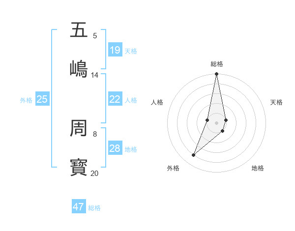 五嶋 周寳さんを姓名の画数から五運を鑑定