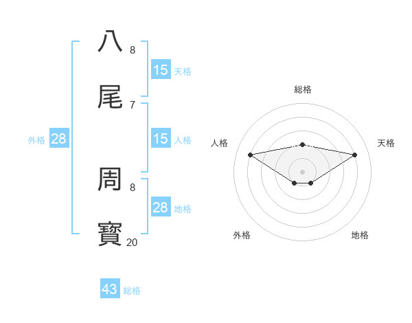 八尾 周寳さんを姓名の画数から五運を鑑定
