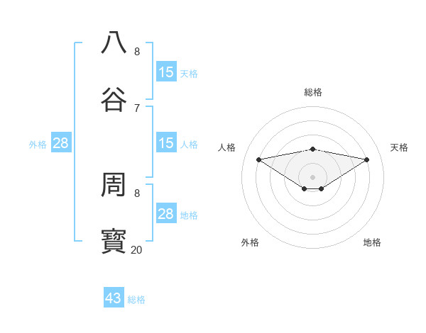 八谷 周寳さんを姓名の画数から五運を鑑定