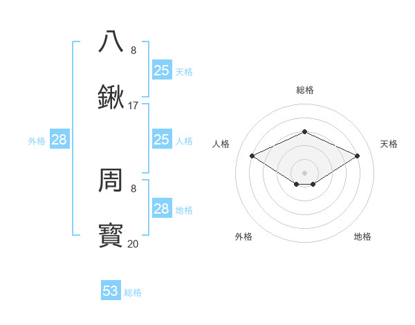 八鍬 周寳さんの総格は53画の3点!