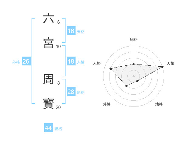 六宮 周寳さんの総格は44画の2点!