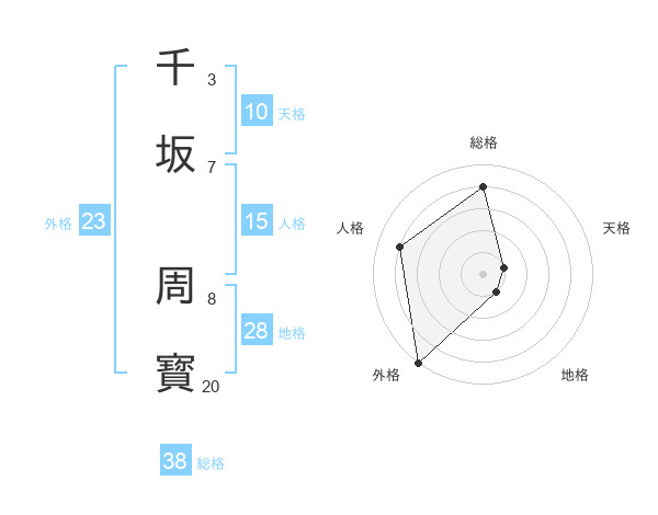 千坂 周寳さんを姓名の画数から五運を鑑定