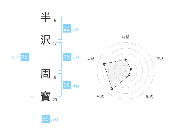 半沢 周寳さんの総格は50画の2点!