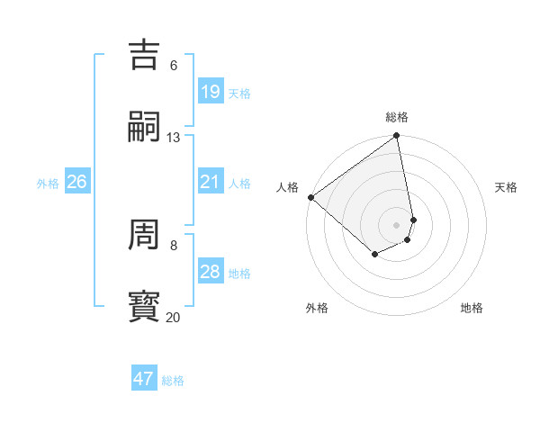 吉嗣 周寳さんを姓名の画数から五運を鑑定