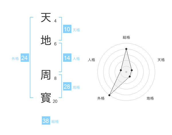 天地 周寳さんの総格は38画の4点!