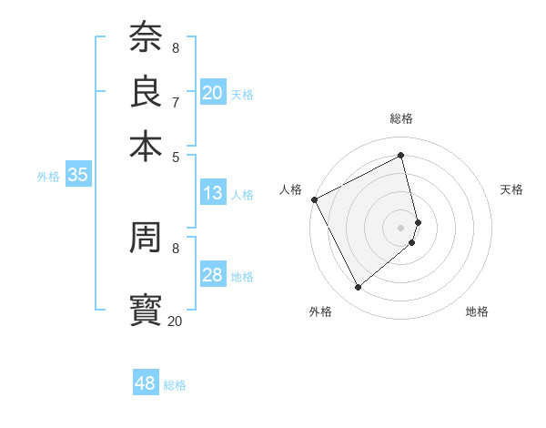 奈良本 周寳さんの外格は35画の4点!