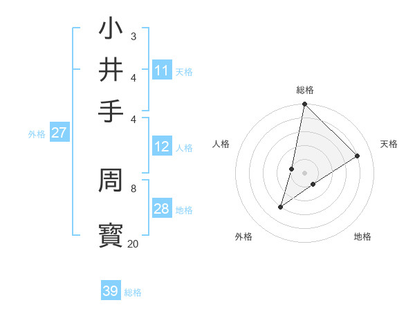 小井手 周寳さんを姓名の画数から五運を鑑定