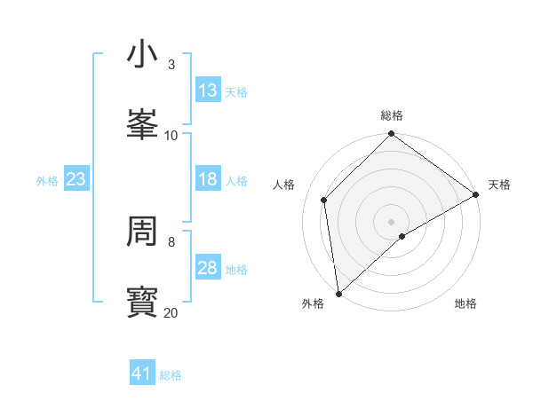 小峯 周寳さんの外格は23画の5点!