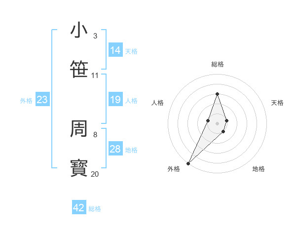 小笹 周寳さんを姓名の画数から五運を鑑定