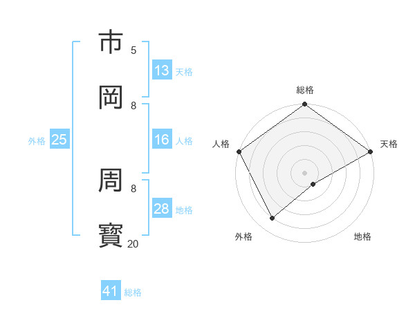 市岡 周寳さんの総格は41画の5点!