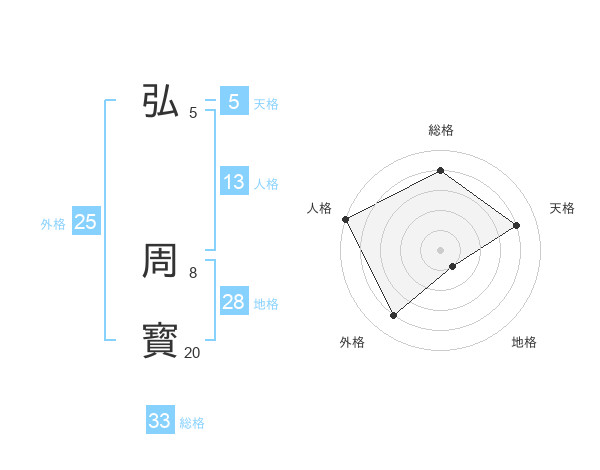 弘 周寳さんの総格は33画の4点!