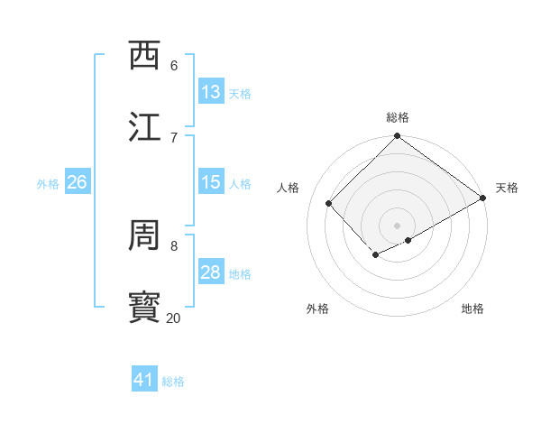 西江 周寳さんの総格は41画の5点!