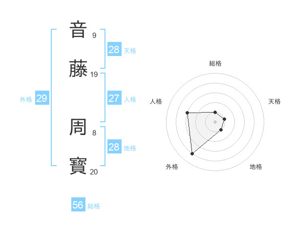 音藤 周寳さんを姓名の画数から五運を鑑定