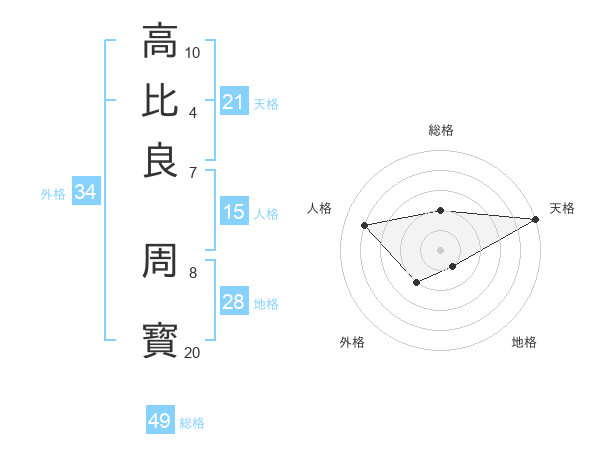 高比良 周寳さんを姓名の画数から五運を鑑定