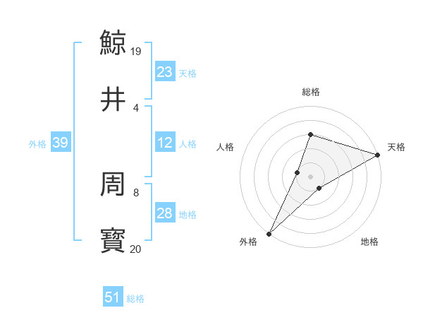 鯨井 周寳さんを姓名の画数から五運を鑑定