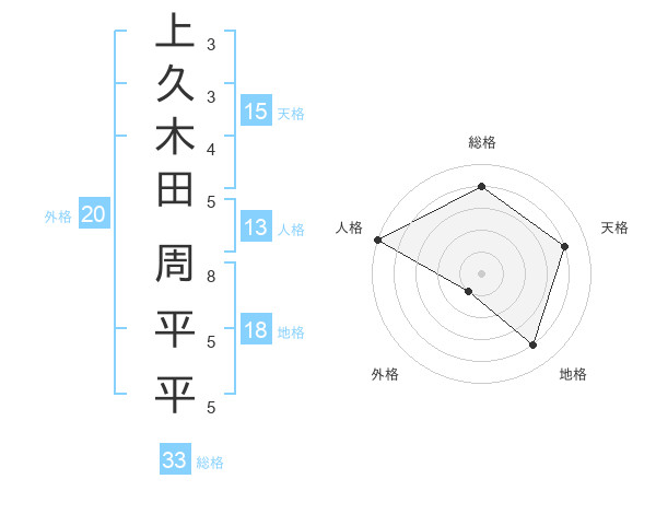 上久木田 周平平さんの総格は33画の4点!