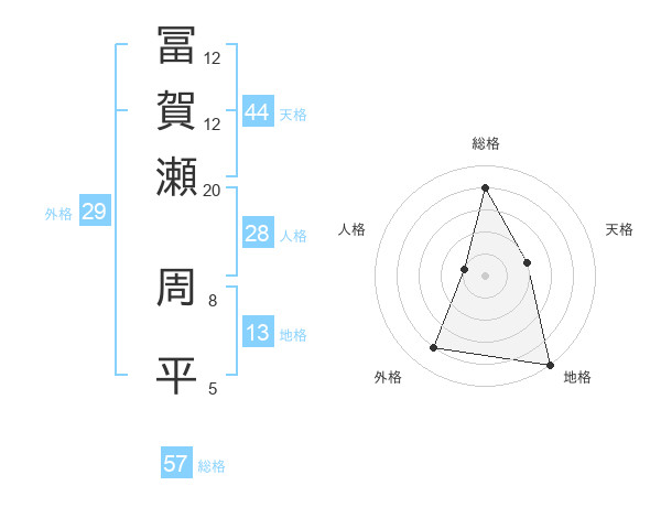 冨賀瀬 周平さんを姓名の画数から五運を鑑定