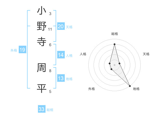 小野寺 周平さんの総格は33画の4点!