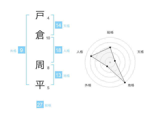 戸倉 周平さんの総格は27画の3点!