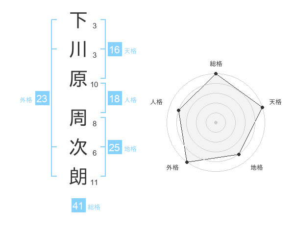 下川原 周次朗さんを姓名の画数から五運を鑑定
