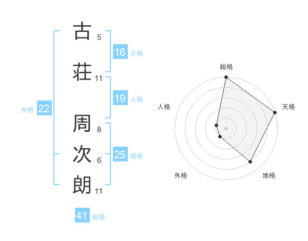 古荘 周次朗さんを姓名の画数から五運を鑑定