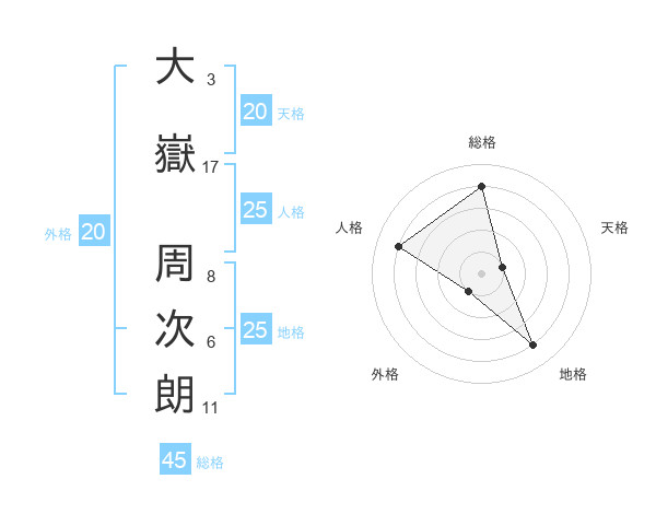 大嶽 周次朗さんを姓名の画数から五運を鑑定