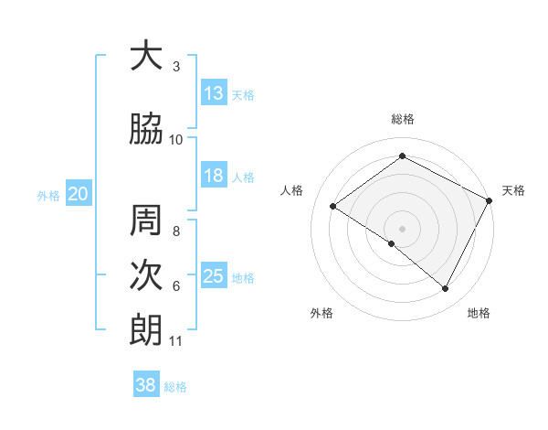 大脇 周次朗さんを姓名の画数から五運を鑑定