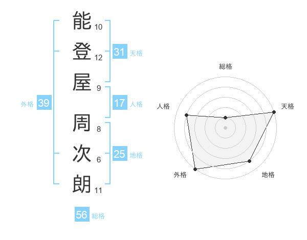 能登屋 周次朗さんを姓名の画数から五運を鑑定